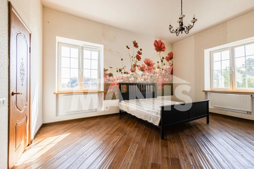 В интерьере — высокий потолок (7м) и «второй свет» в гостиной, современная кухня и каминный зал, спальня с собственным санузлом и гардеробной
